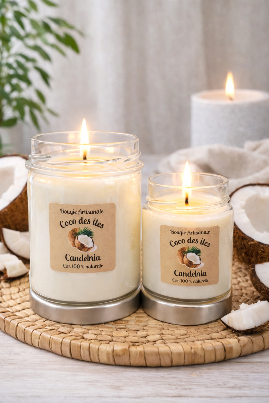 Bougies à la cire de soja et aux huiles de Grasse à la senteur Coco des iles