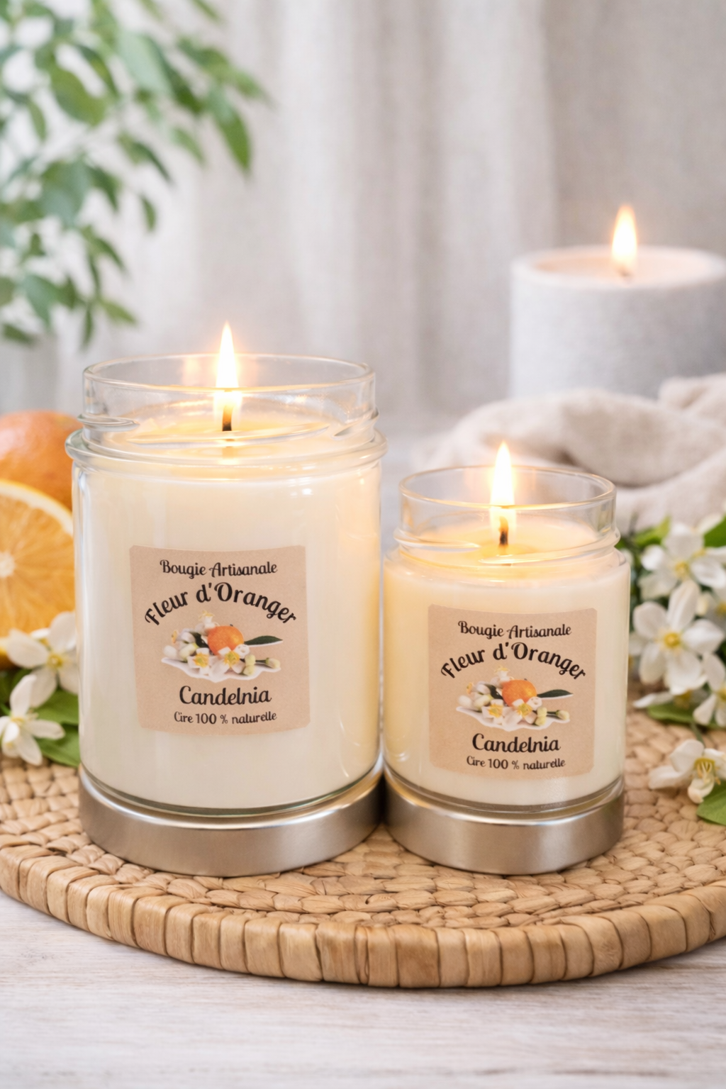 Bougies à la cire de soja et aux huiles de Grasse à la senteur fleur d’oranger